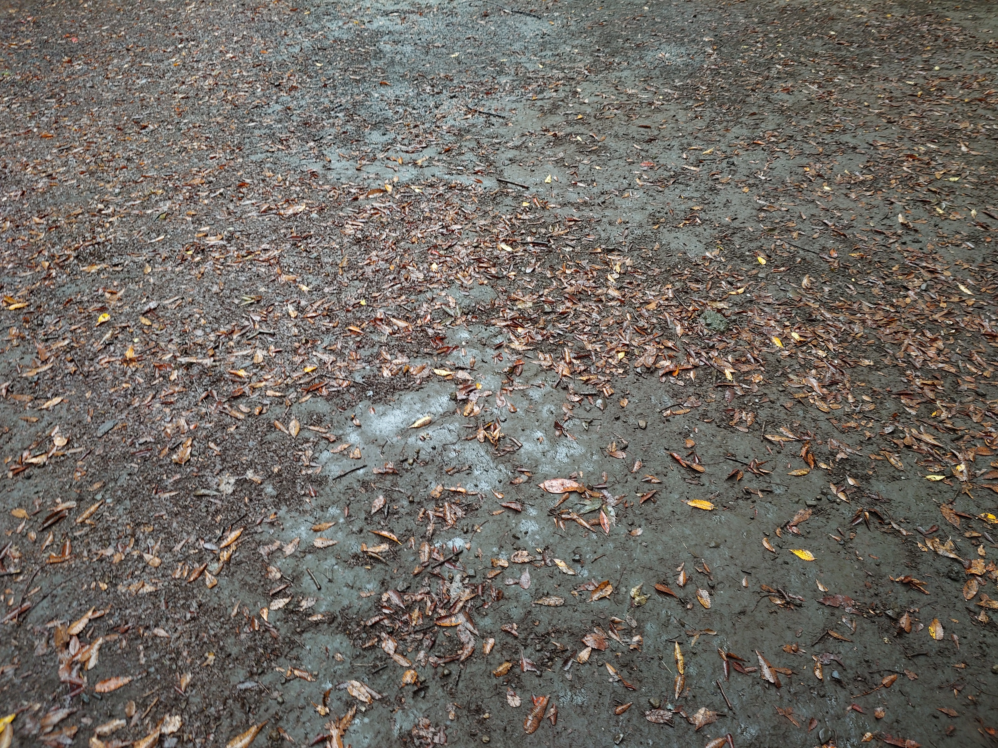 6時半に会場予定の蘆花公園へ行くと、雨で地面はつるっつる。