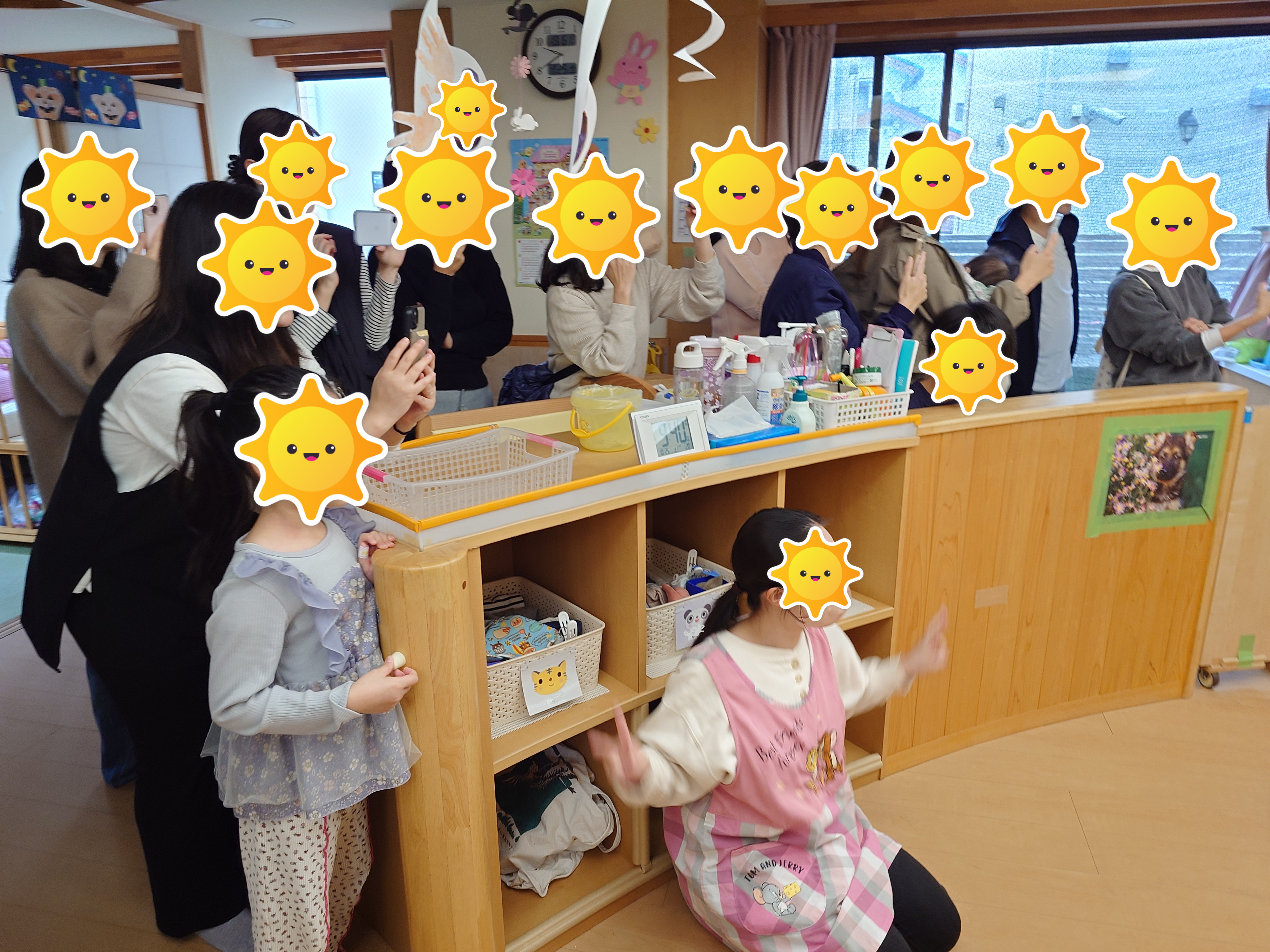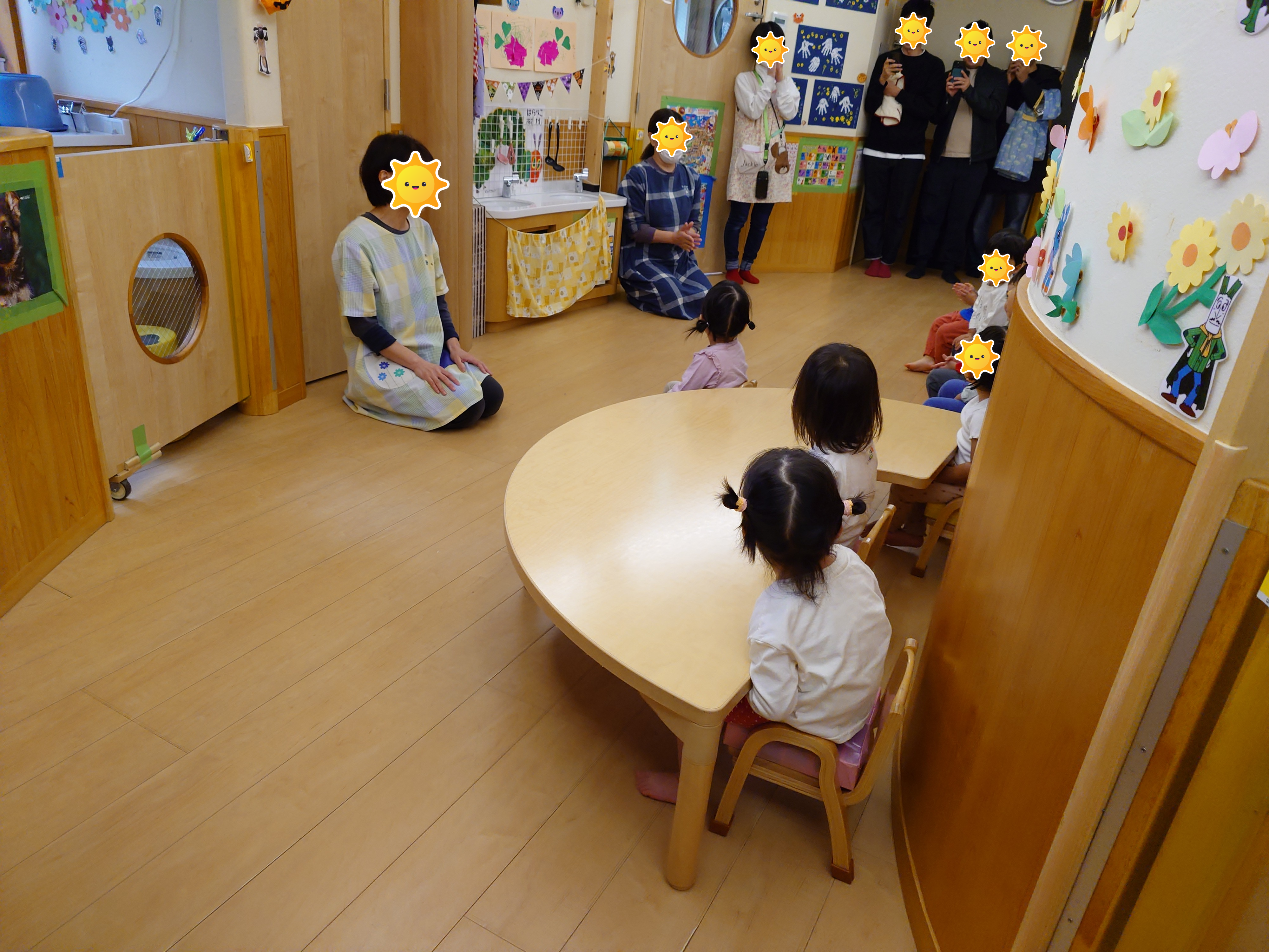 このようなときに普段の朝の様子も見ていただこうといつも通り挨拶をしました。いつもはいないお父さんやお母さんのカメラを構える姿を見てすこしきんちょうしちゃったかな?