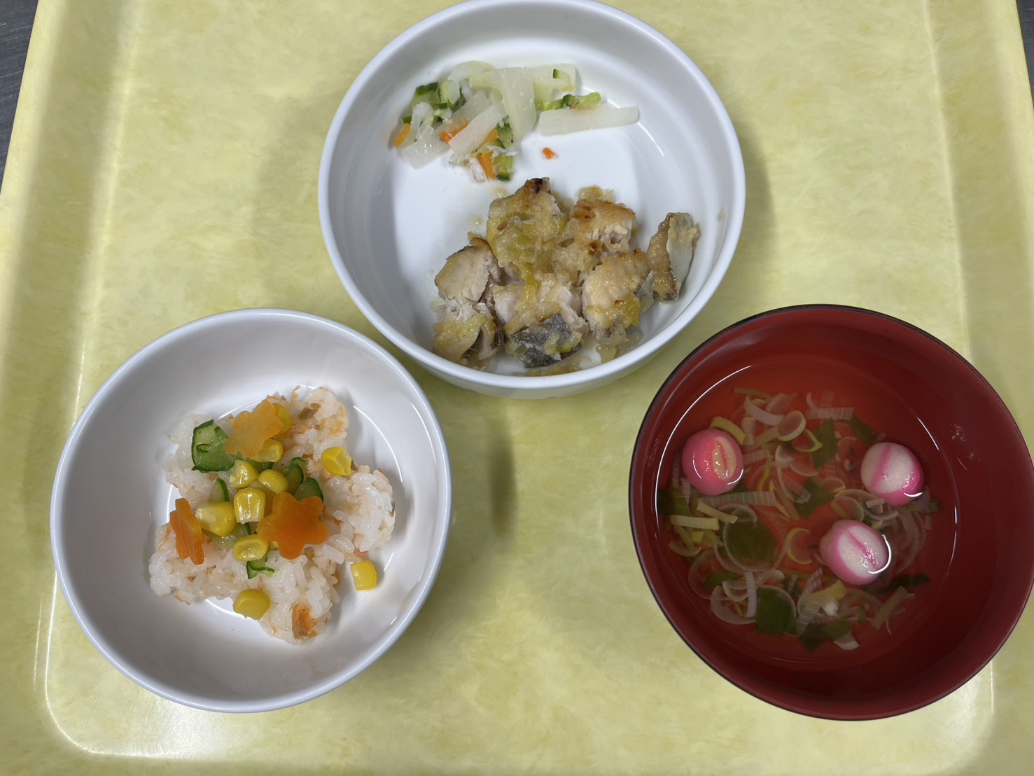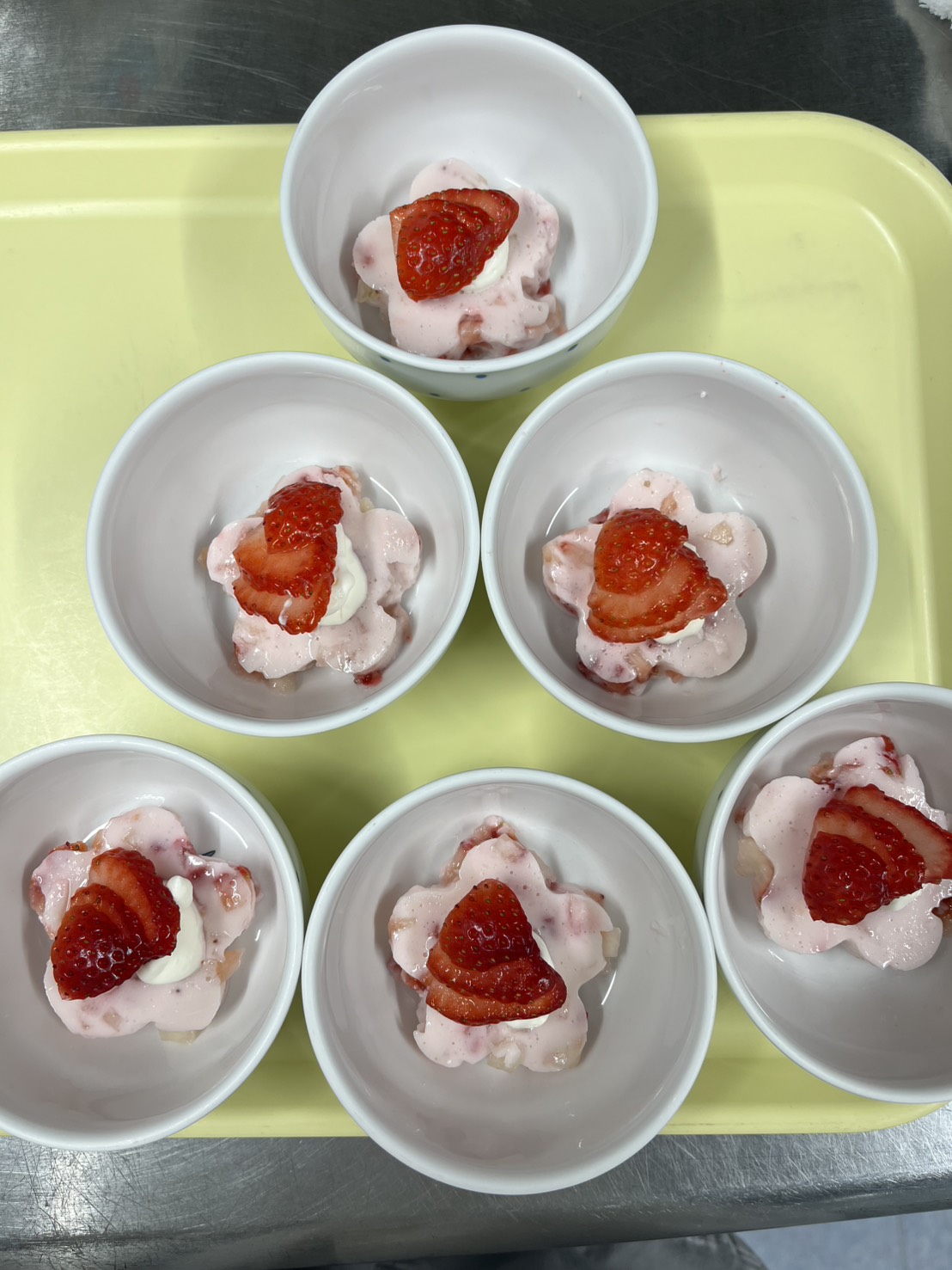 ひな祭りの日の給食はひな祭りならではのちらし寿司とおすまし、おやつはイチゴプリンでした。