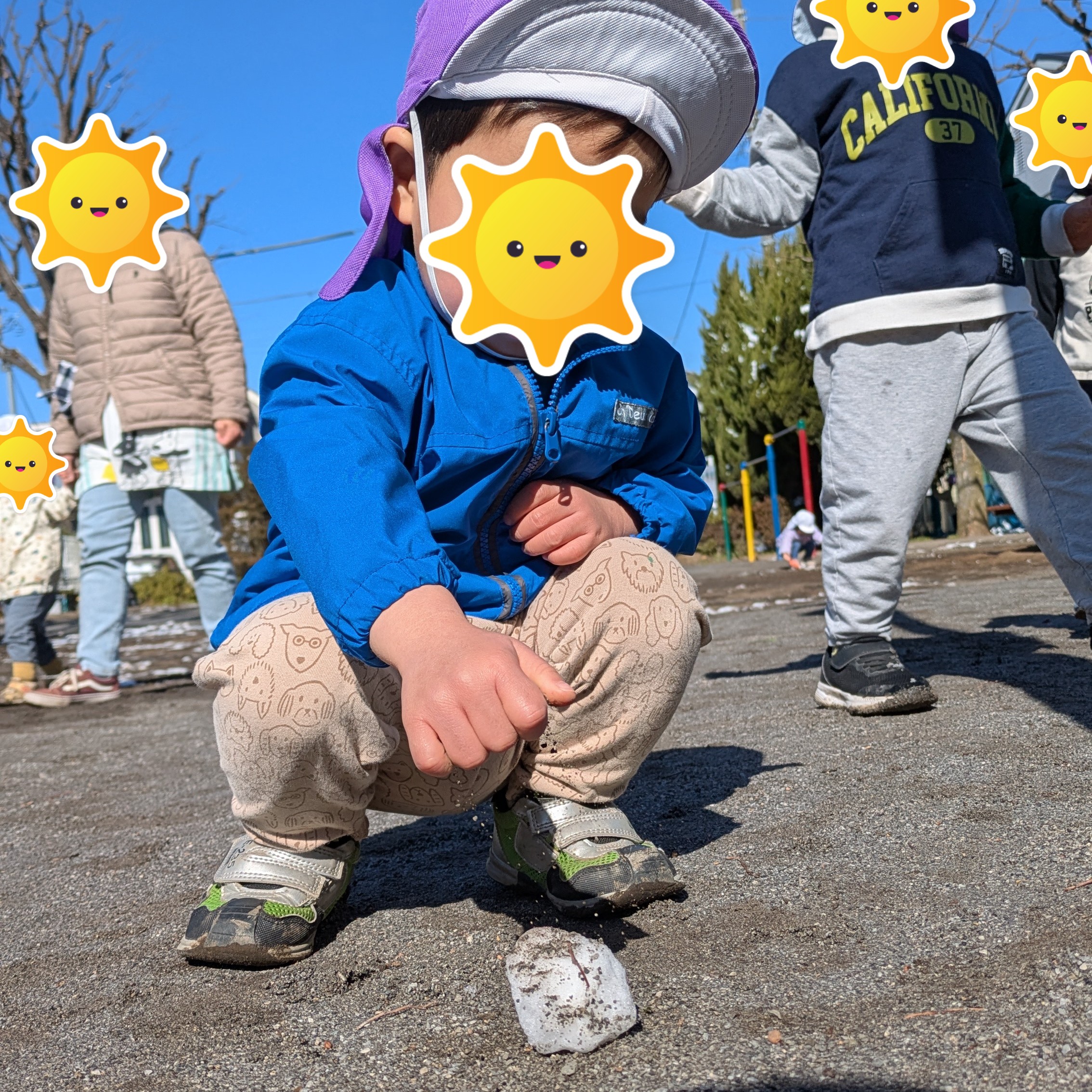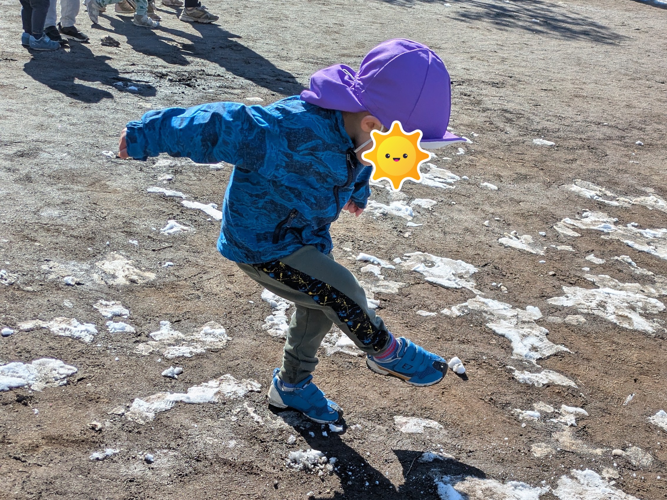 2月は雪が降りましたね。すぐに溶けてしまいましたが、それでも子どもたちは公園の雪に触れることができました。