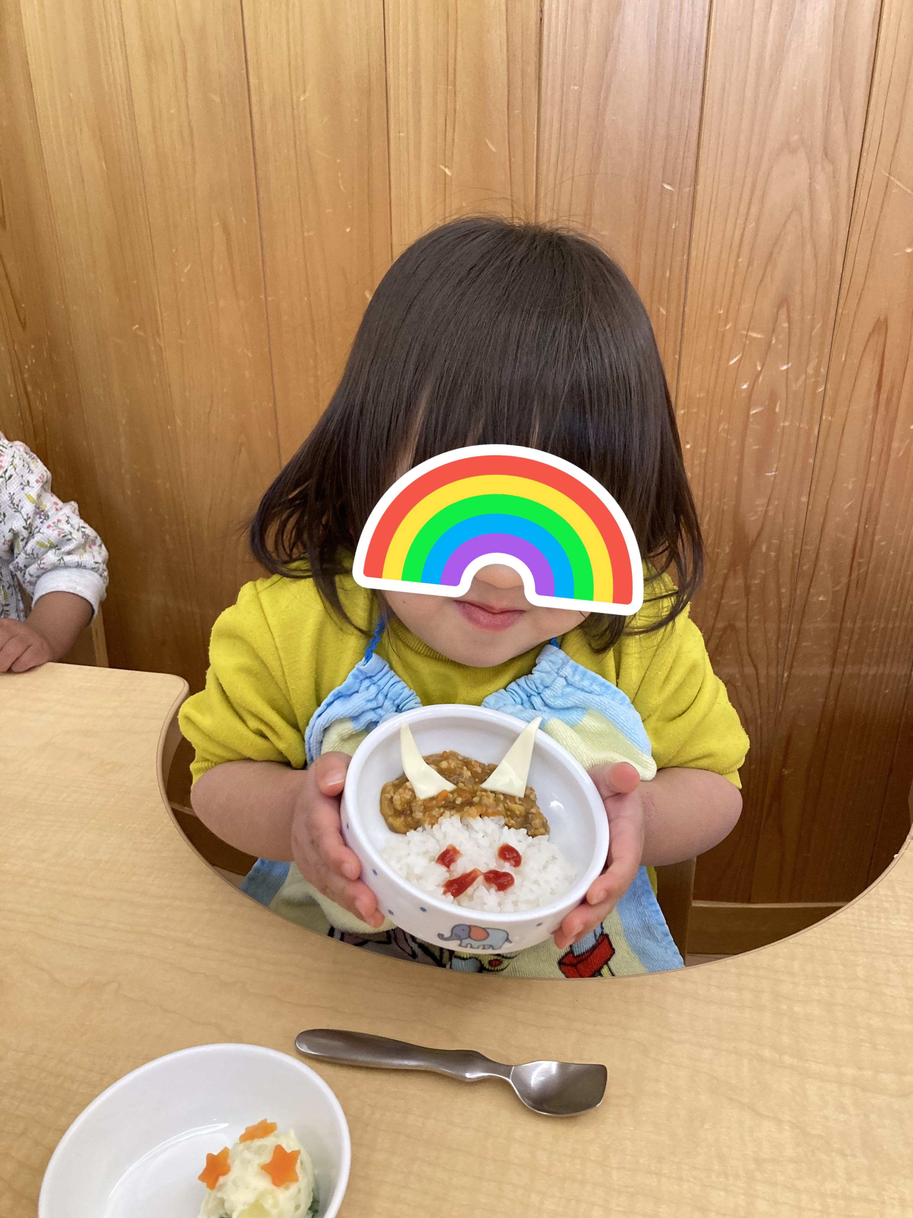 そして節分の時の給食は「オニカレー」、おやつは「オニプリン」でした。