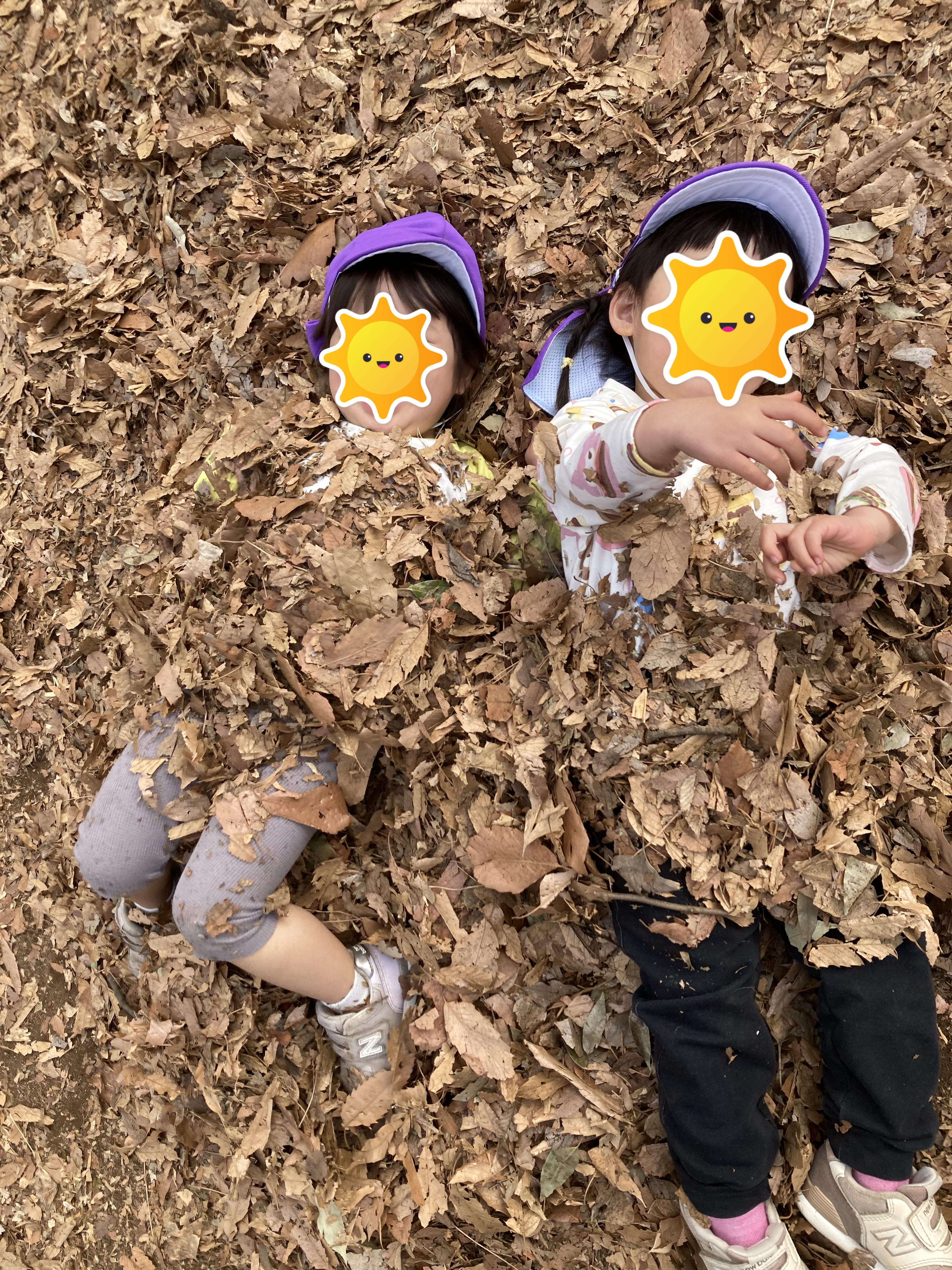 公園では、落ち葉がいっぱい落ちていて、全身落ち葉まみれになりました。