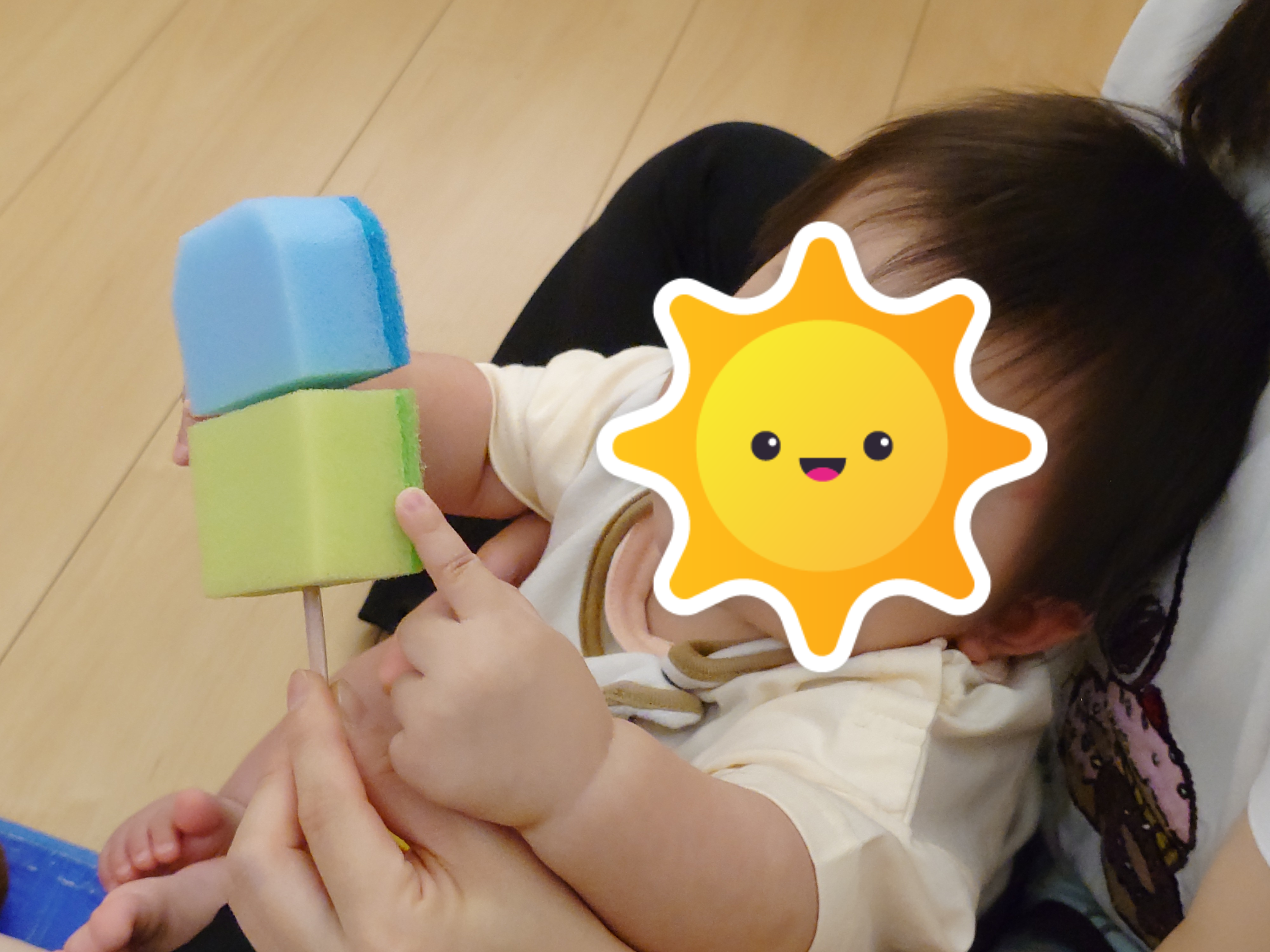 今度は1歳児のおともだちがお兄さんの店番の見よう見まねでチャレンジです。とても様になってるでしょ。