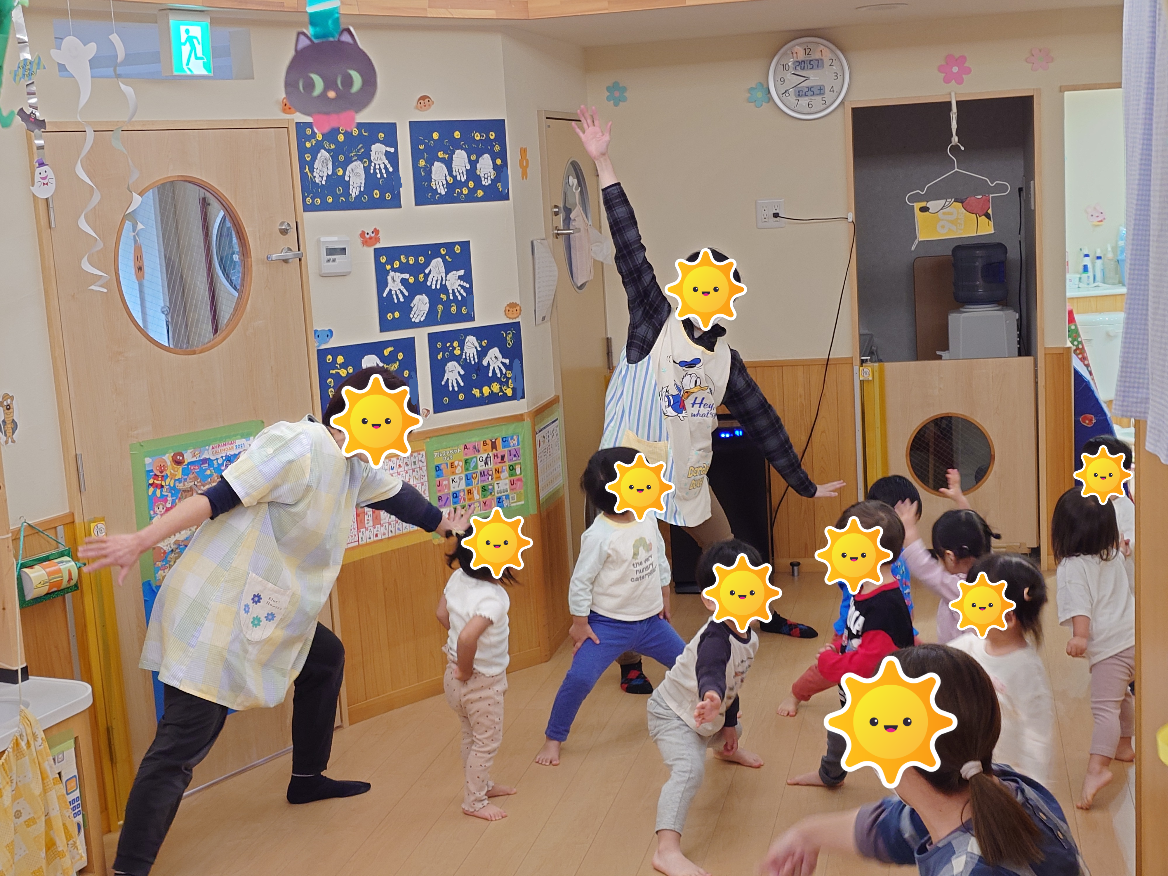 まずはウォーミングアップのために元気に体操です。みんなノリノリで踊っていますね。